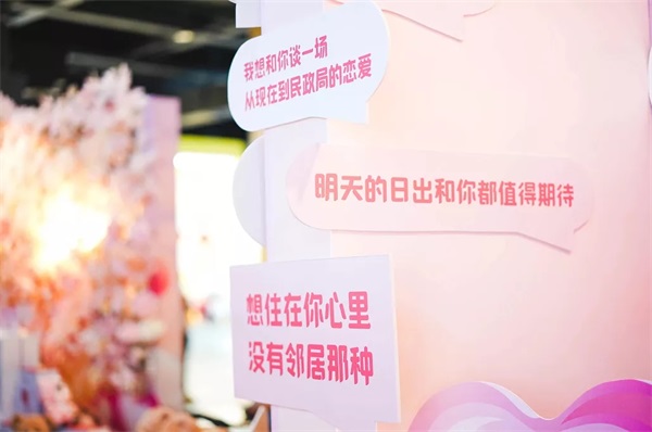 全粉色系的场景设计,漂亮的玫瑰花墙。桃心粉气球造型打卡点,浪漫情话博物馆,超梦幻的打卡圣地,带你玩转粉色情人节。