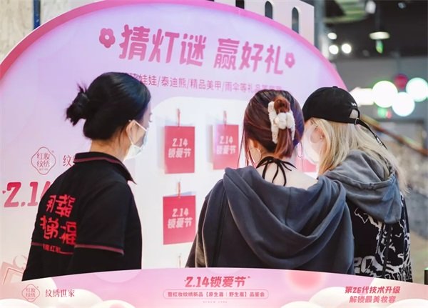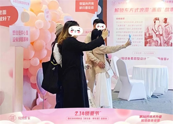 2.13-15日红妆纹绣在友谊·阳光城6楼打造了一场沉浸式的粉红浪漫集市——红妆纹绣2.14锁爱节暨女神同款新品【原生眉/野生眉】品鉴专场。