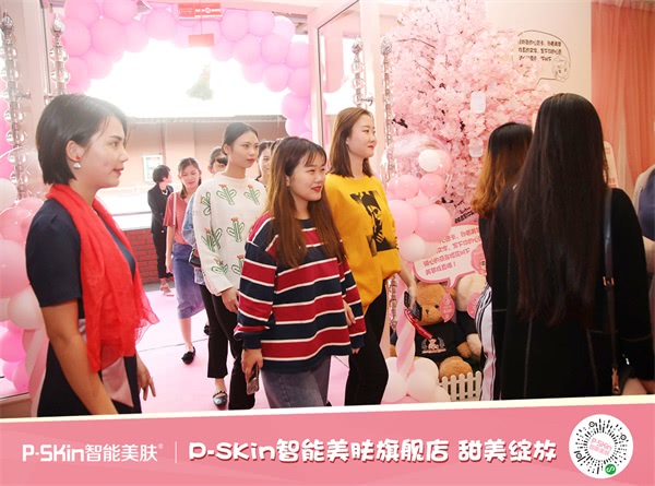 2018年12月1日,P-SKin智能美肤旗舰店在海口友谊阳光城9楼盛大开业,以“粉红肌肤”作为对美丽的解读,利用颜色、主题打造的新一代智慧美店,让粉色成为一种可以交流的新潮文化。