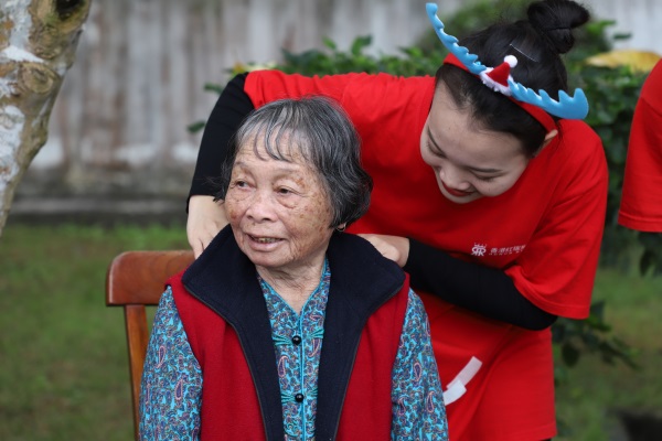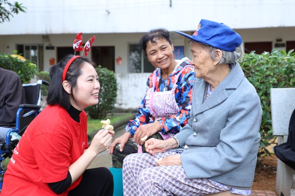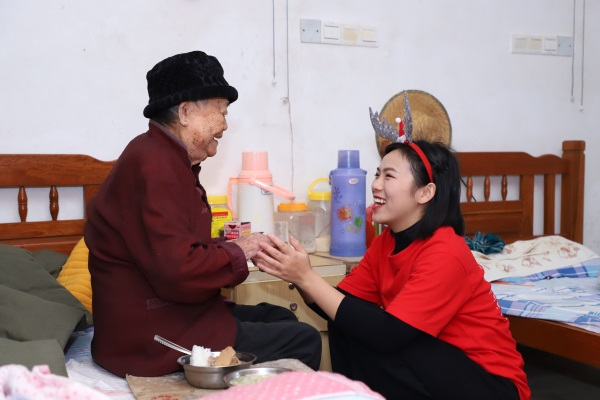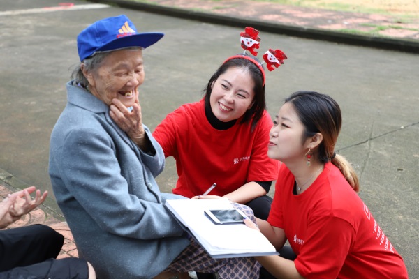 红瑞家人和实习生们跟老人聊天谈心,听老人讲自己的过去,也与老人们分享自己的生活。老人们对红瑞家人们表示感谢,感谢每一年都能来看望他们。