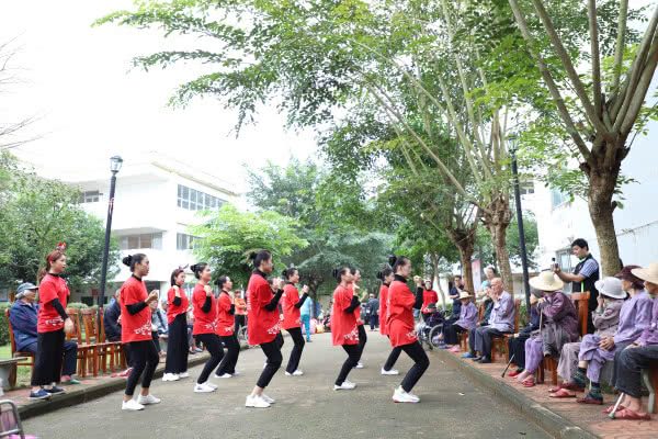 实习生们表演舞蹈《拍灰舞》,在旋转、跳跃中用充满朝气与灿烂的笑容为敬老院扫去沉闷,给老人们带去欢声笑语。