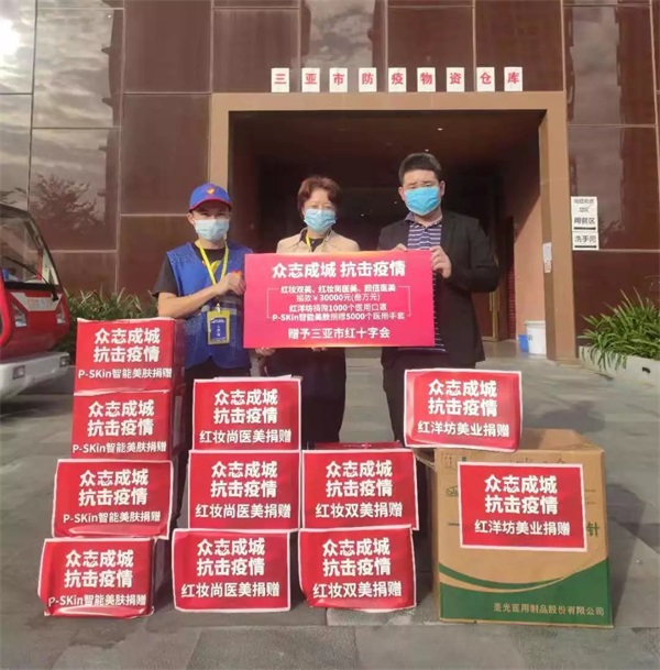 2020年2月11日,红瑞集团旗下红洋坊美业向三亚市红十字会捐赠1000个医用口罩。红瑞集团旗下P-skin智能美肤机构向三亚市红十字会捐赠5000双医用手套。