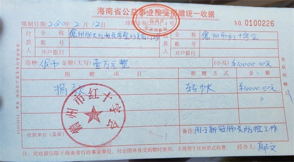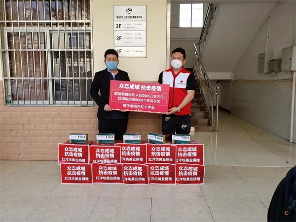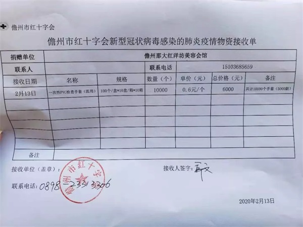 2020年2月12日,红瑞集团旗下红妆双美向儋州市红十字会捐款1万元。红瑞集团旗下红洋坊美业向儋州市红十字会捐赠5000双医用手套。