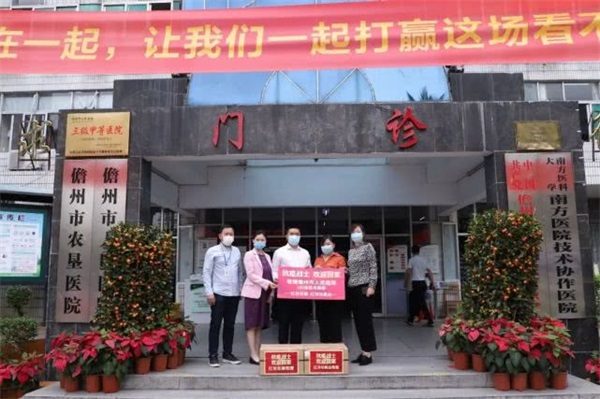 ▲红瑞旗下红妆双美、红洋坊美业向儋州市人民医院赠送100盒医用面膜