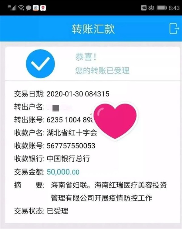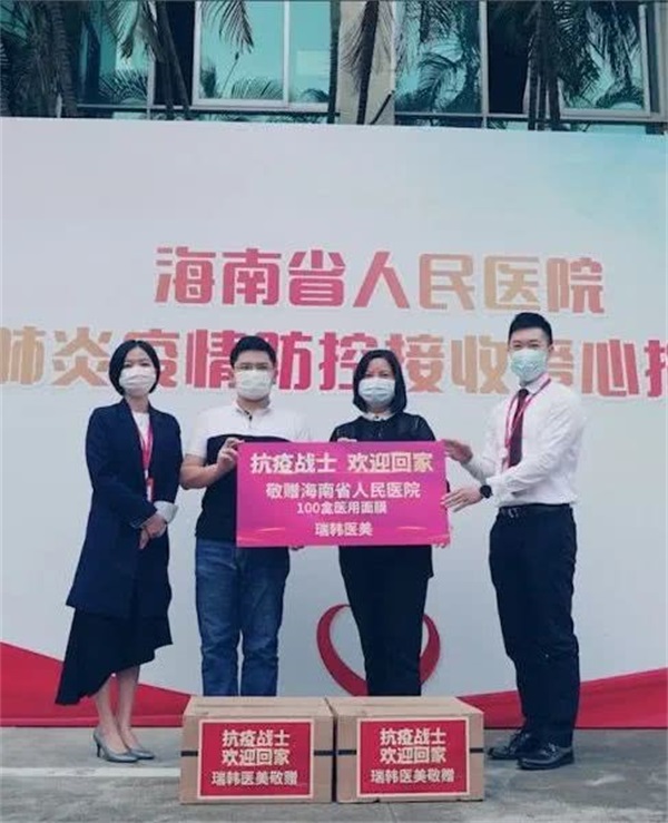 ▲红瑞旗下瑞韩整形医院向海南省人民医院捐赠100盒医用面膜