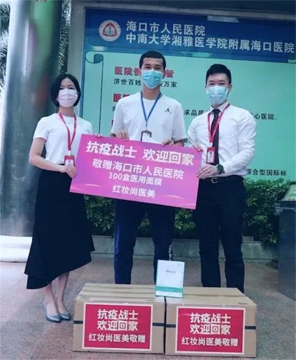 ▲红瑞旗下红妆尚医美向海口市人民医院赠送100盒医用面膜