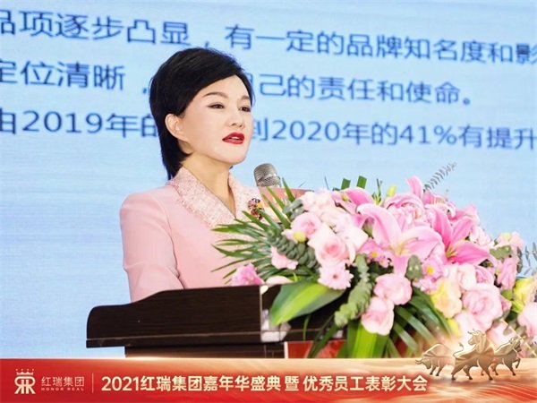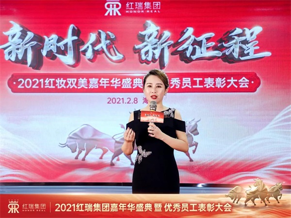 在全体伙伴雷鸣般的掌声和欢呼声中,红瑞集团的大家长——张董隆重登场,并倾情分享了她带领红瑞家人们2020年《以客户为中心,以奋斗者为本》的心路历程和对全体红瑞人2021年的美好期许。在这特殊的一年里,红瑞人上下一心,同舟共济,共克难关。“饮水思源,我们深知,所取得的每一点进步和成功,都离不开顾客朋友们的关注、信任、支持和参与,在红瑞发展的过程中,顾客给予了我们无穷的力量。”涌泉之恩,涌泉相报,始终坚持“以客户为中心”的发展战略,发自内心地爱顾客,不乱花顾客的每一分钱,秉持“以奋斗为本”的企业准则,才能在中国美业巍然矗立。