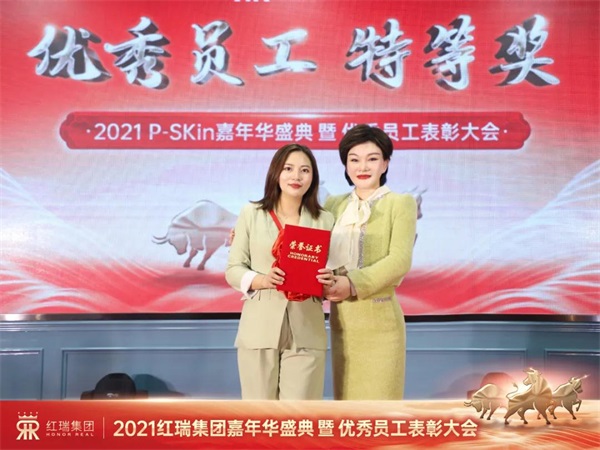 接下来颁发的是红瑞年度优秀员工特等奖,他们对企业心怀感恩,忠诚奉献,他们是红瑞的钢铁战士,是红瑞优秀的红旗手,他们用青春吹响了奋进的号角,红瑞优秀员工特等奖的获得者,是每一位红瑞人争相学习的模范榜样。