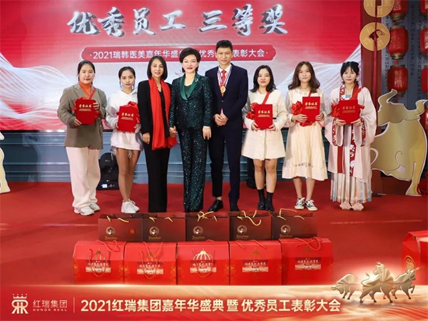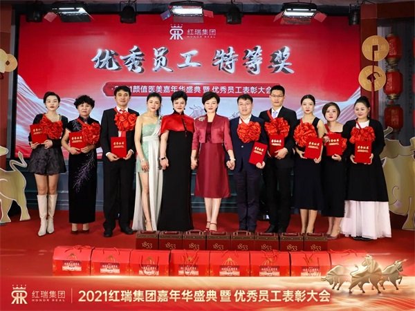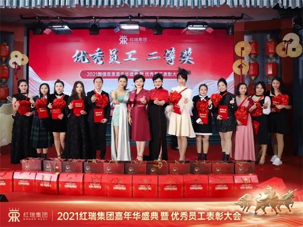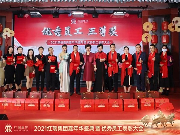 金牛贺岁,辞旧迎新。红妆美业、红妆尚整形、瑞韩整形、红洋坊美业、悦妈荟科技产后修复、颜值医美、红妆学校、P-SKin智能美肤红瑞集团十大品牌拜年视频精彩纷呈,现场处处洋溢着欢乐祥和的节日氛围。