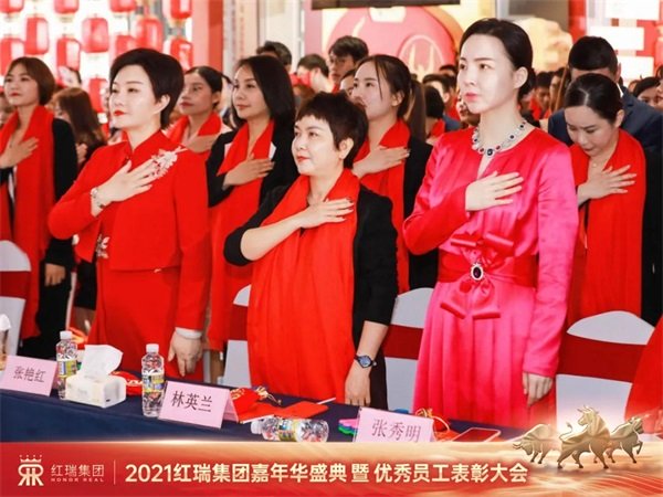 “因为我们是一家人,相亲相爱的一家人,有福就该同享,有难必然同当,用相知相守换地久天长... ...”伴随着全场家人《相亲相爱一家人》的歌声,张董和红瑞集团各高管们共同送上祝福:祝愿伟大的祖国繁荣昌盛!祝愿红瑞发展日新月异!祝愿亲爱的顾客和朋友阖家幸福!祝愿红瑞家人新年快乐!幸福满满!2021红瑞嘉年华盛典暨优秀员工表彰大会圆满落幕!