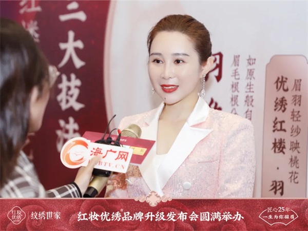 除此之外,在“优绣红楼美人妆”品牌升级的感召之下,当天活动现场更吸引了海广网等各大媒体争先前来采访报道,从品牌内涵、新品技术、现场观众的描眉体验感受等多维度进行探讨东方美学的无限可能和实现方式,从而让更多人认识到纹绣技术和东方文化交融的美感。